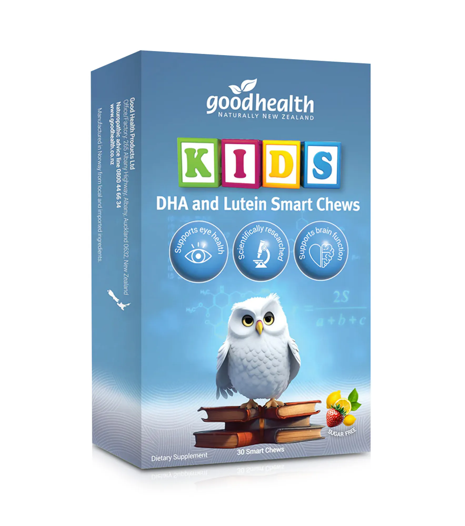 DHA and Lutein Smart Chews are sugar free delicious tasting strawberry and lemon flavoured chews that are easy to swallow once chewed.