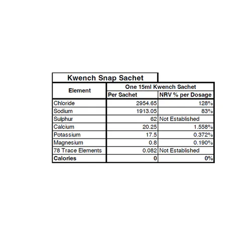 Kwench hydration supplements contain 84 essential minerals and trace elements to support optimal health.