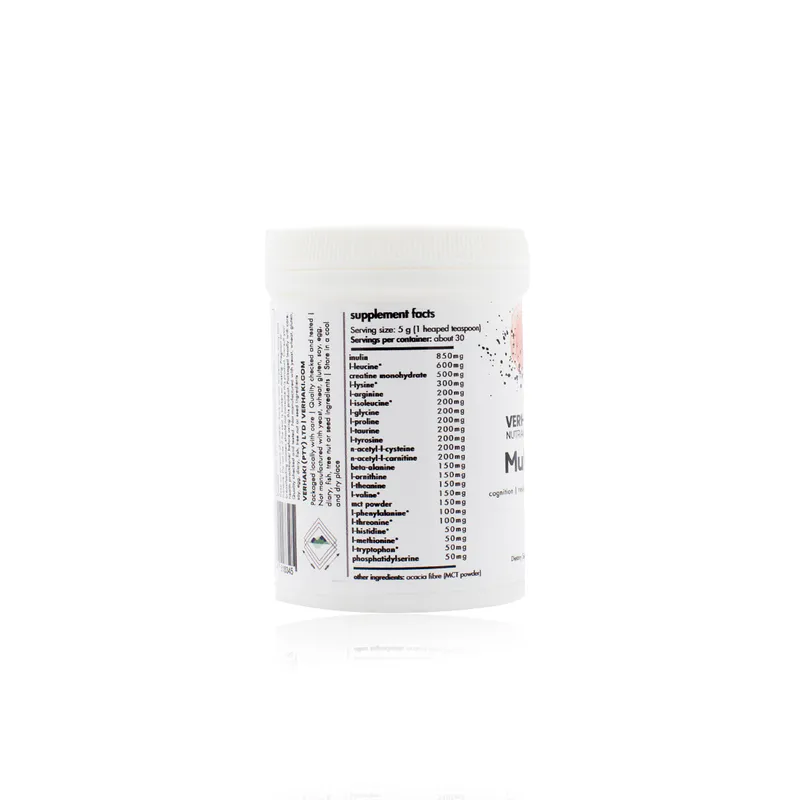 Phosphatidylserine is quickly becoming an essential component to overall health. It is an amino acid derivative (like creatine monohydrate, also in MultiAmino) that is fat soluble and found in high amounts in the brain, where it contributes to cognitive functioning. It has been studied for cognition, for chronic stress, and for exercise performance.